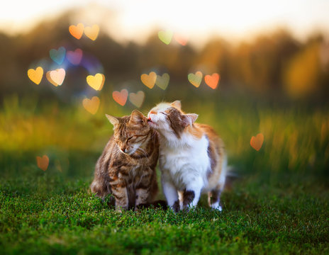 Cats love. Happy day. Watercolor illustration. Hand drawing
