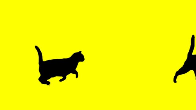 Shadow of a walking cat on a yellow background