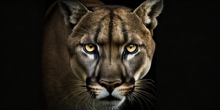 Big eyes. Green eyes of a mountain lion, cougar close-up.