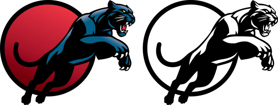 Vector art of a black panther is running with great speed, isolated on white background, illustrating the power and agility of this feline predator