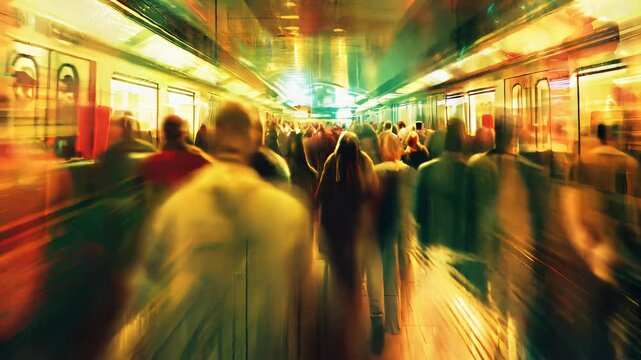 Crowd of people running out of subway station in panic