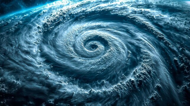 Aerial view showcasing the calm center of a powerful cyclone.