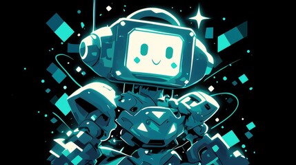 Illustration of a robot with a catchy slogan set against a black background featuring a futuristic design suitable for children s T Shirt merchandise