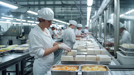 Chefs at work in a commercial kitchen. Male chef cooking using wok styled pans in a takeaway / restaurant setting