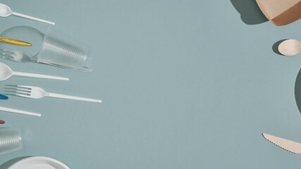 Disposable plastic and paper dishes. Biodegradable alternative to plastic. Stop motion animation.