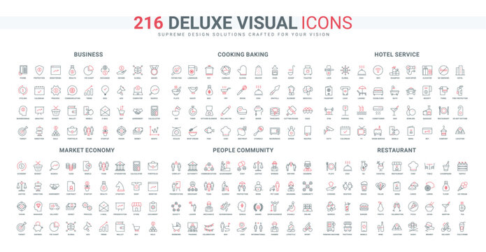 People community, cooking baking line icon set. Business team, direction of development, catering service of restaurant and hotel hospitality thin black and red outline symbols vector illustration