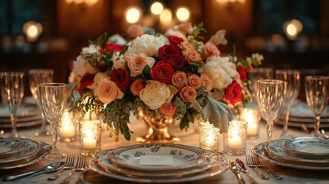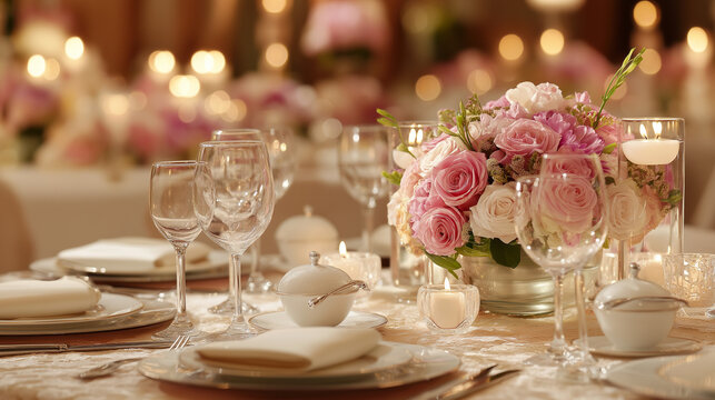 Wedding celebration with elegant floral arrangement and sophisticated decor