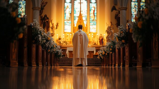 Priest praying in the church