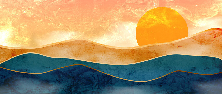 mountain wallpaper design with landscape line arts, luxury background design for cover, invitation background, packaging design, wall arts, fabric, and print. Vector illustration