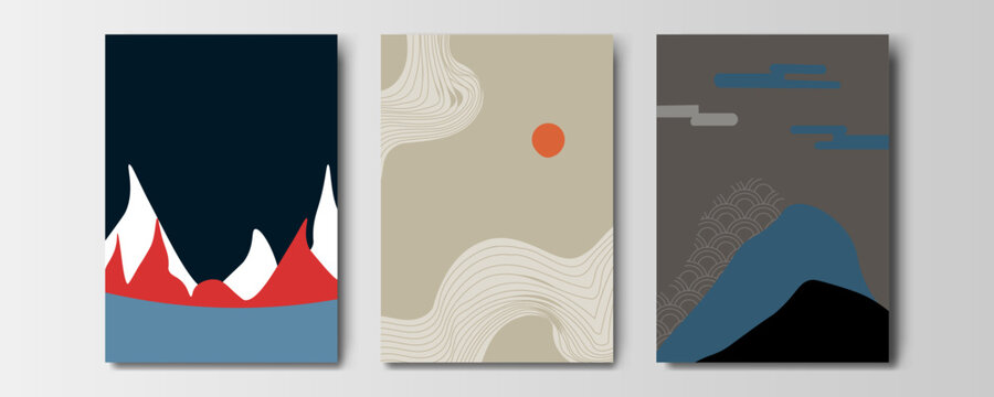 set of Mountain line art background, Black and white landscape wallpaper design for cover, invitation background, packaging design, wall art and print. Vector illustration.