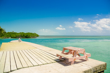Beautiful  caribbean sight with turquoise water in Caye Caulker, Belize.