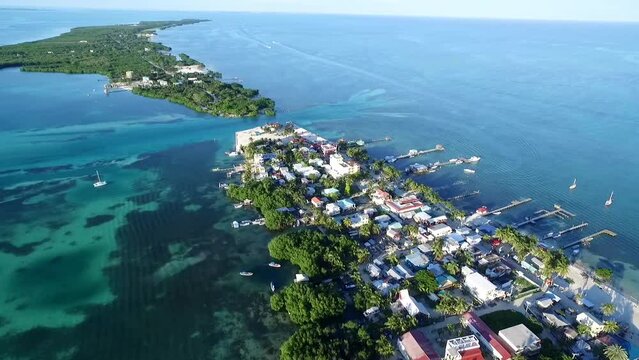 Caye Caulker Island in Caribbean Sea. Belize. Drone Point of View.