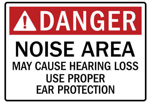 Hearing protection sign noise area may cause hearing loss. Use proper ear protection