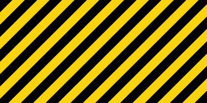 Warning sign with yellow and black diagonal lines. Attention, danger or caution symbol. Construction site signage, road safety notice, hazard banner, security alert shield. Vector illustration