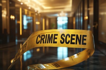 Crime Scene Tape in a Dimly Lit Hallway of a Luxurious Hotel During the Evening