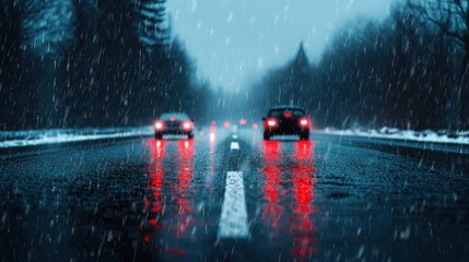 Driver and Windshield view, Car Driving at night on a rainy storm