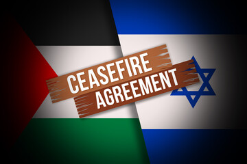 Israel and Hamas agree to ceasefire background with flags