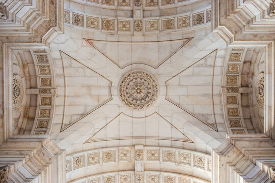 Background and texture of white T bar ceiling tiles with nice light gradation in low angle and perspective view