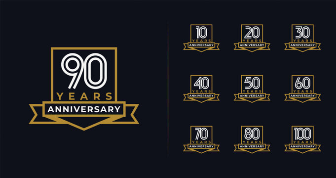 Set of anniversary logo with elegant style. 10, 20, 30, 40, 50, 60, 70, 80, 90, 100, birthday symbol collections