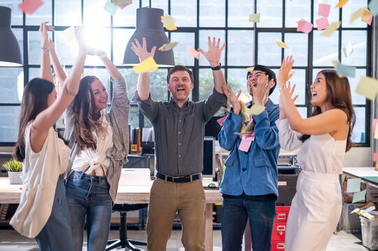 Team of businessman leader and business staff have business meeting and celebrate after success of business project