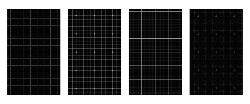 Blueprint black graph. Empty grid with lines and dotted. Used for notes graph documents business and education. Set of Vector Illustrations.
