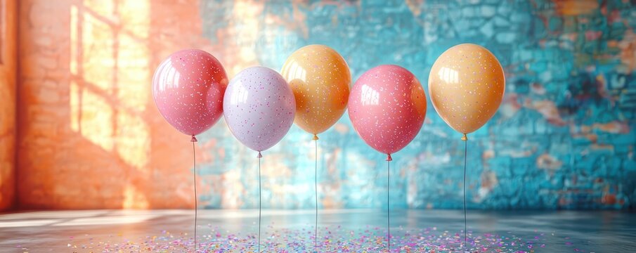 Colorful balloons celebrating joyful moments indoor setting artistic photography vibrant atmosphere close-up viewpoint
