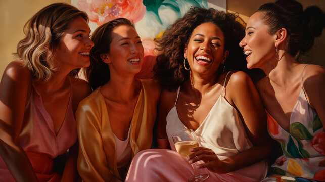 Festive friendship celebration featuring diverse female group