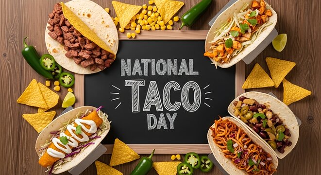 Vibrant national taco day celebration with assorted tacos