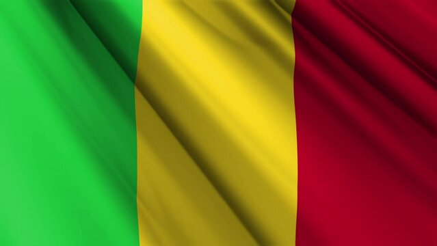 Close up realistic texture textile silk satin flag of Mali waving fluttering background. National symbol of the country. 22nd of September, Happy Day concept. 3D animation 1080p Full HD