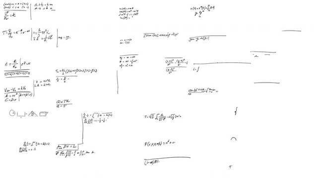Writing complex math and science formulas on a whiteboard intricate design element.