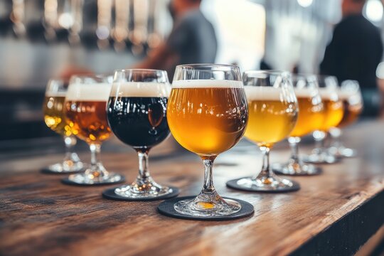 Celebrating International Beer Day: A Closeup of Craft Brews Against a Blurred August Background