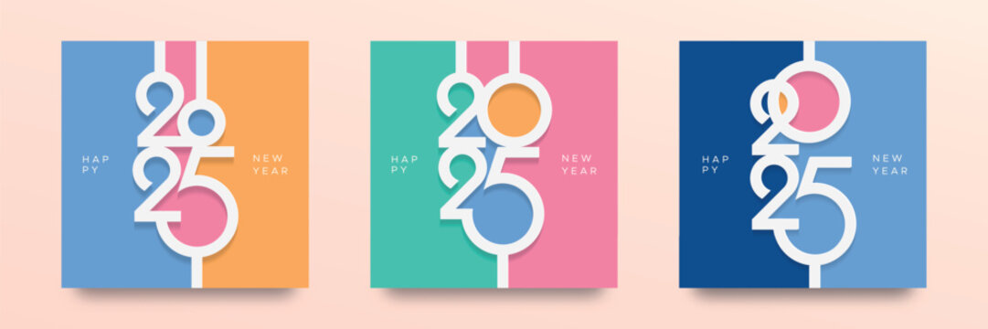 Set of 2025 new year square template with unique hanging number. Happy new year 2025 cover design concept