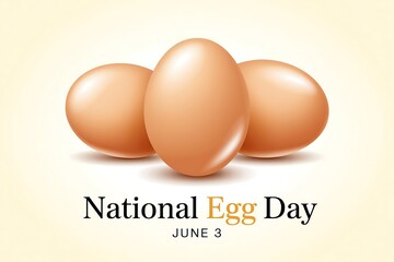 Three brown eggs arranged against a soft yellow background for national egg day celebration
