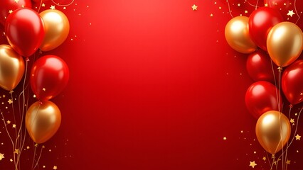 Celebration party banner background with red, gold balloons, carnival, festival or birthday balloon red background, red celebration background template