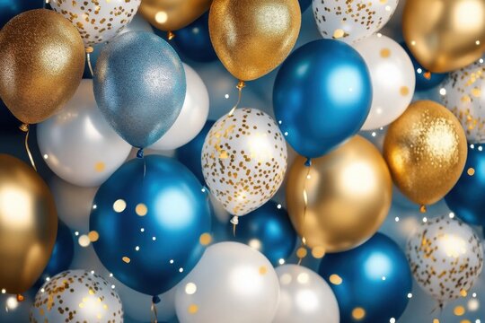 Celebratory balloons in various colors isolated on white background