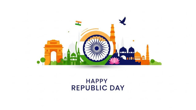 Celebratory graphic design marks the annual observance of India Republic Day on the twenty-sixth of January with patriotic colors.