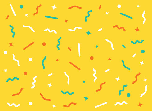 Background with colorful celebratory confetti fluttering from above. White background.