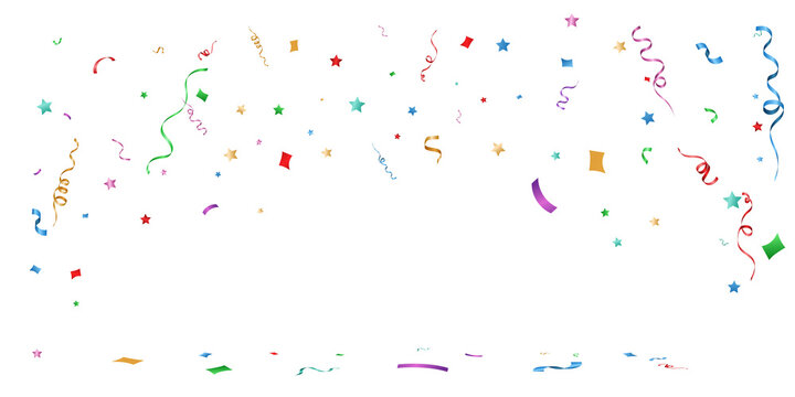 A vibrant PNG confetti border with colorful ribbons, stars, and floating particles, perfect for festive designs, party decorations, and celebratory overlays.