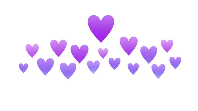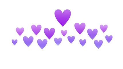 Purple heart shapes gradient color floating in row isolated on transparent background symbolizing love romance affection and happiness perfect for romantic or celebratory designs