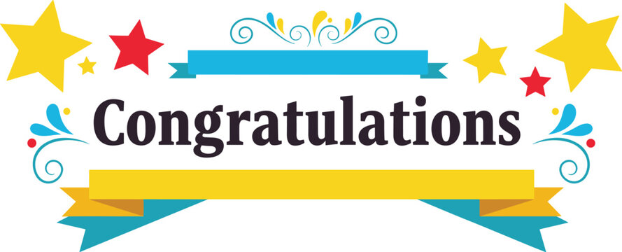 Congratulations message with banner and stars. Achievement, success, celebration, encouragement, support, congratulations card, achievement, festive, happiness