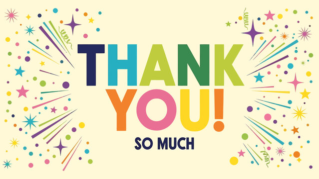 Colorful Thank You illustration with confetti and celebratory fireworks, featuring vibrant typography THANK YOU! for gratitude and appreciation messages