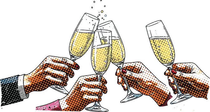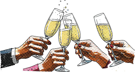 People clinking champagne glasses in a celebratory toast, capturing a moment of joy and success.