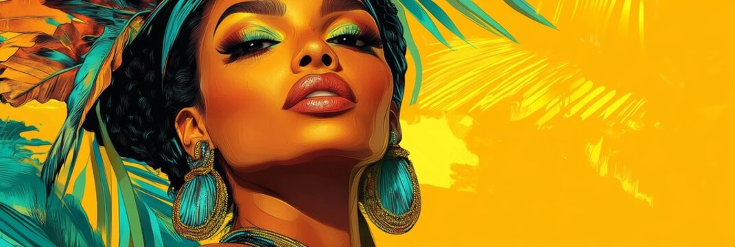 Latin-inspired illustration: A woman in eye-catching traditional attire, ready for the Rio Carnival celebratory poster