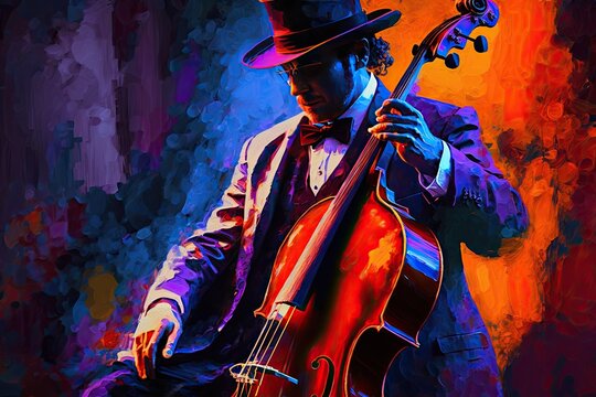 Jazz cellist in impressionist art with abstract background. Generative AI