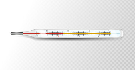 Mercury thermometer on a transparent background. Measuring body temperature during illness. Medical thermometer for diagnostics and treatment. Used for web design on the topic of science