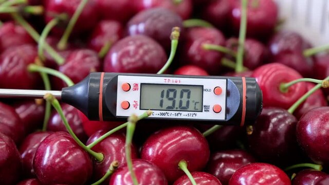Measuring the temperature of cherries after cooling