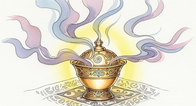 Golden censer releasing incense smoke