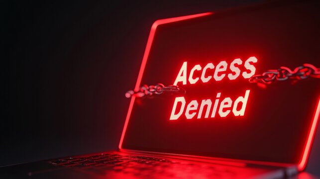 Digital Privacy Concept Laptop with Chain and Padlock Over Access Denied Screen - Cold Blue Tech Lighting for Cybersecurity Solutions and Online Privacy Campaigns