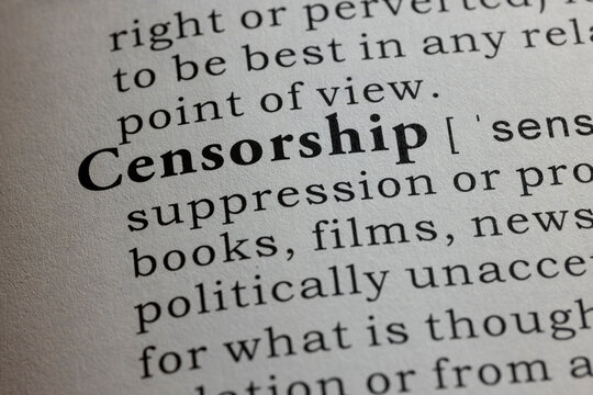 Social media restrictions and suppression of speech as censorship to censor opinions and thought in a 3D illustration style.