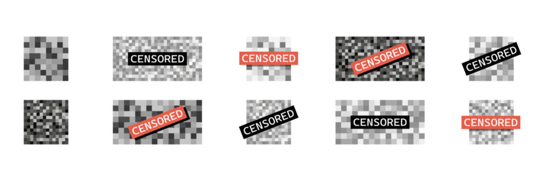 Censorship elements of various types, censored bar and pixel censor mosaics signs set, censure pixelation effect and blur, templates for visual materials censoring